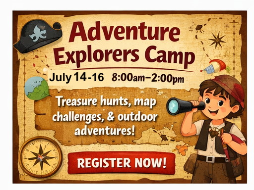 Grab your explorer hat and get ready for an adventure! Campers will learn map-reading skills, solve treasure puzzles, and work together on exciting scavenger hunts. Kids will create their own treasure maps, experiment with compasses and magnets, and complete teamwork challenges.